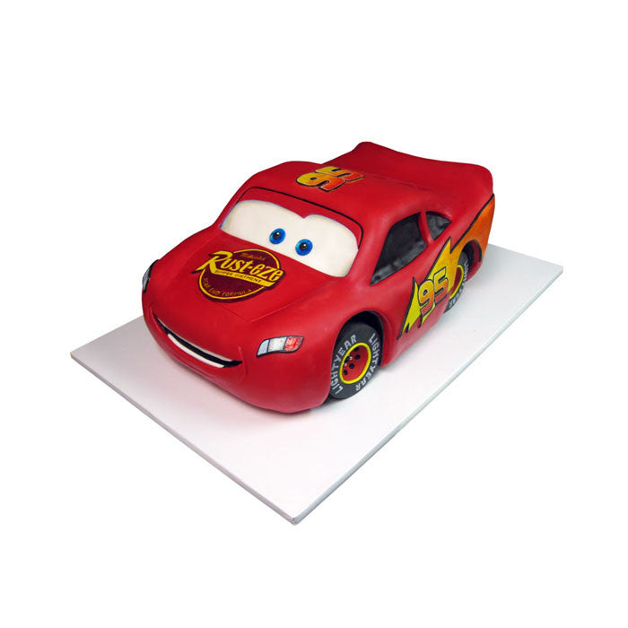 Custom sculpted Lightning McQueen Cars Cake from Disney Cars movie series, filled with incredible cake from the City Cakes team in Manhattan.