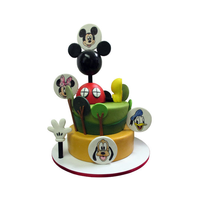 Take a slice of fun out of this delicious Disney Junior favorite Mickey Mouse Clubhouse Cake, custom made with hand painted illustrations by City Cakes.