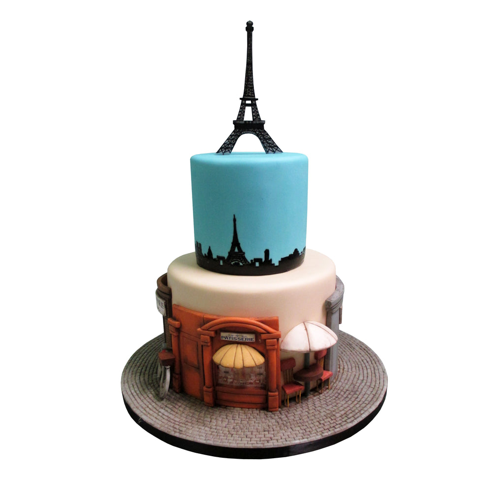 Walk down the beautiful streets of Paris, passing by local boutiques and patisserie, and get ready for a delicious piece of this custom cake by City Cakes NYC.