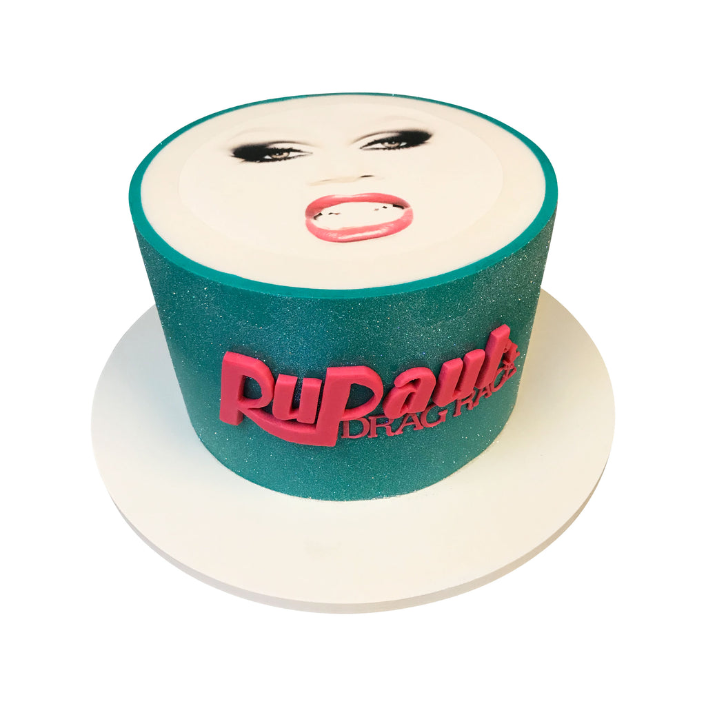 A single tier of fierceness means you need some Ru Paul action. This cake is adorned with edible disco dust around the sides, a hand cut fondant logo, and to finish it all off, the top of the cake is printed with Ru Paul’s Drag Face.