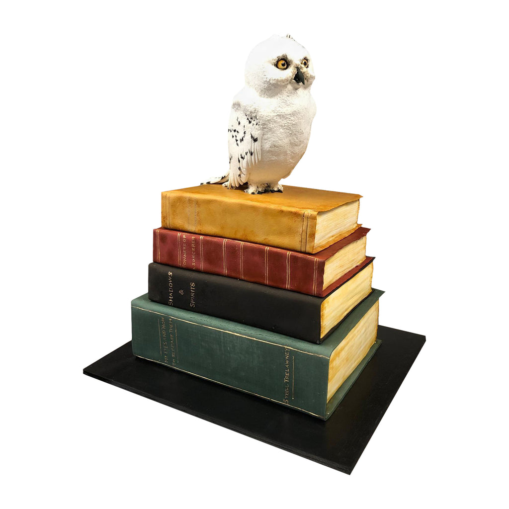 Four stacked books and a wise owl are the perfect representation for Harry Potter. Celebrating their 1st year anniversary on Broadway, this design was custom created by City Cakes and all made out of cake.
