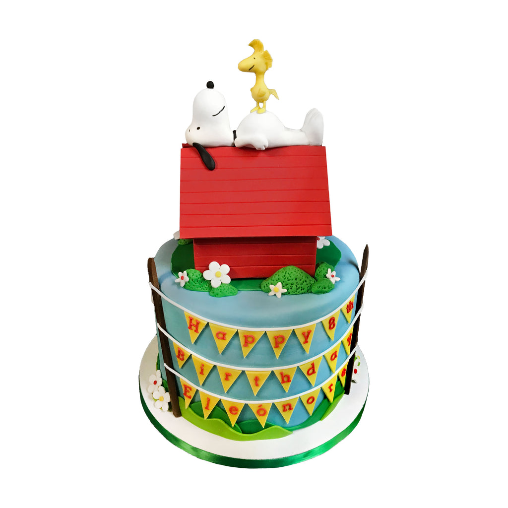 This sweet cake captures the Peanuts group at its best. Snoopy and Woodstock are hand made out of sugar and sit atop Snoopy's doghouse as the party goes on around them. This happy cake is customizable and available within driving distance from NYC!