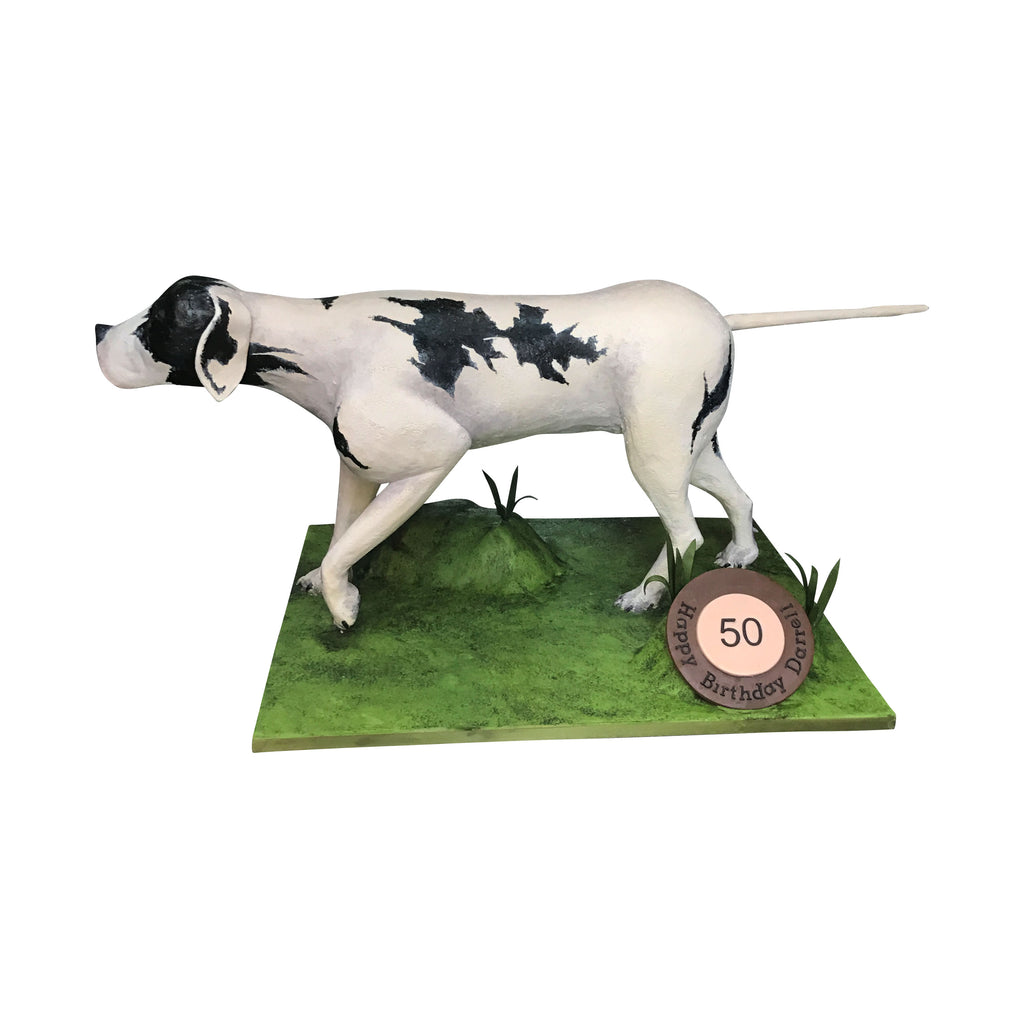 This English Pointer Westminster Dog Show Cake was created by City Cakes for a special 50th birthday of one of the club’s executive members. Standing tall with a 360 view, this hand sculpted, fondant covered, English Pointer was ready to be called into the ring and show off his precision skills.